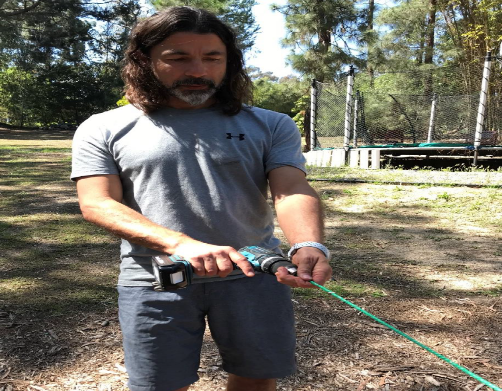 Grab 100 feet of the wire and fold it in two, secure one end to a door or a gate, take the second end and