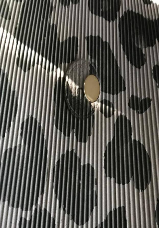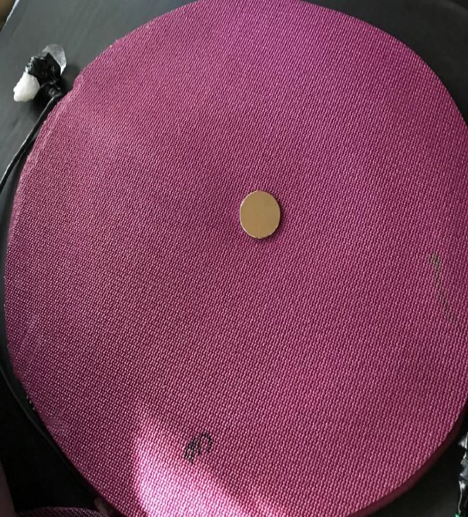 Now place the other spongy mat on top, and put another little magnet on the center aligned with the other two magnets (so you have the big magnet on the bottom and the other two little magnets aligned on top, all of them attracting each other.
