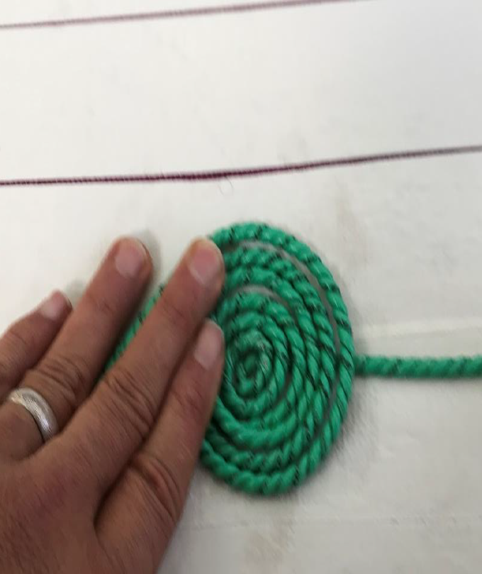 Create a spiral. This is quite challenging since the copper is like a loaded spring, and it can easily unwind, but if you have a very sticky 2 sided tape, you will be able to manage this.